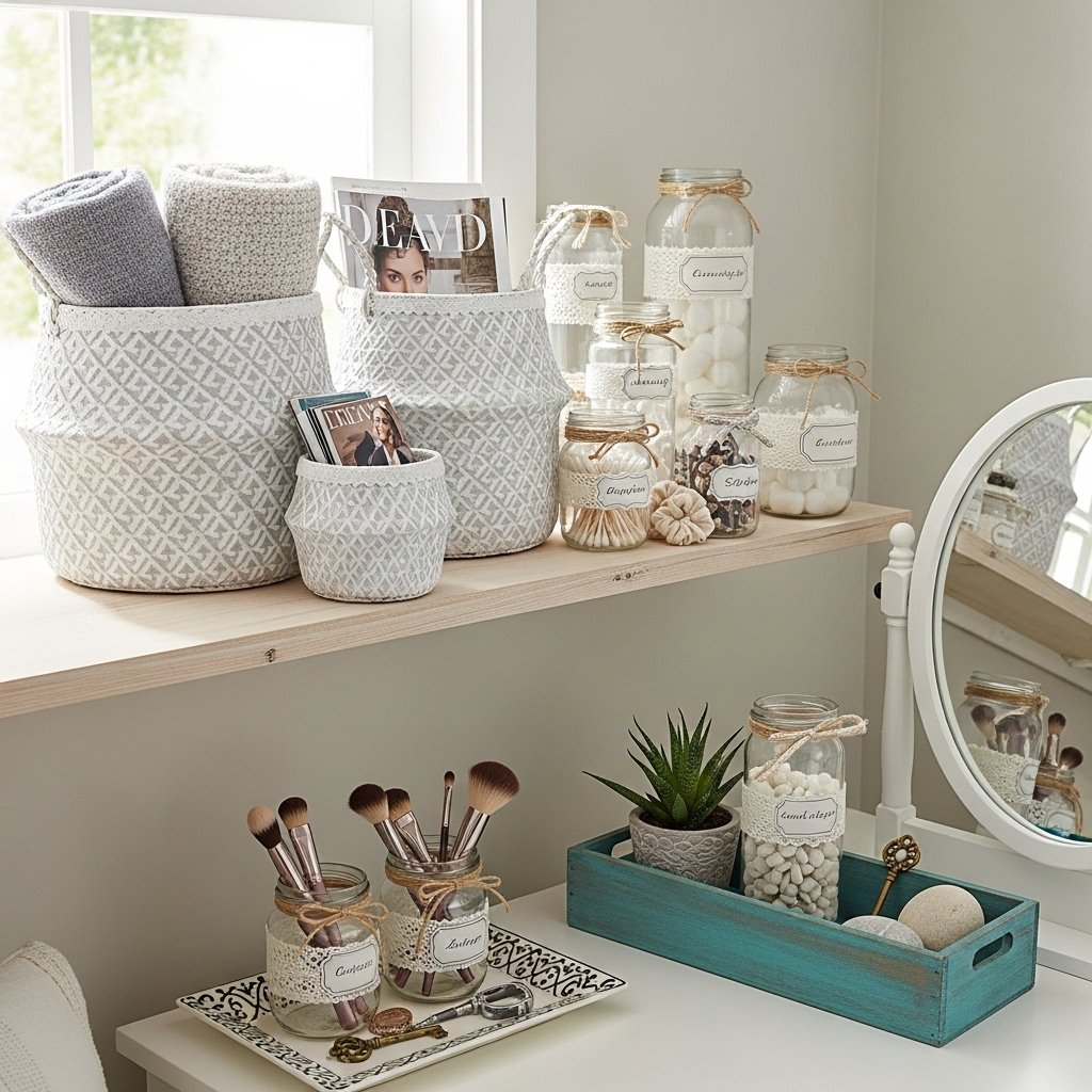 Creative DIY storage solutions help keep the bedroom organized while enhancing décor. You can decorate boxes, baskets, or jars to store accessories, stationery, or beauty items. Labeling and color-coordinating storage keeps the room neat and stylish. Organized spaces feel more relaxing and visually pleasing. DIY storage décor combines function with creativity effortlessly.