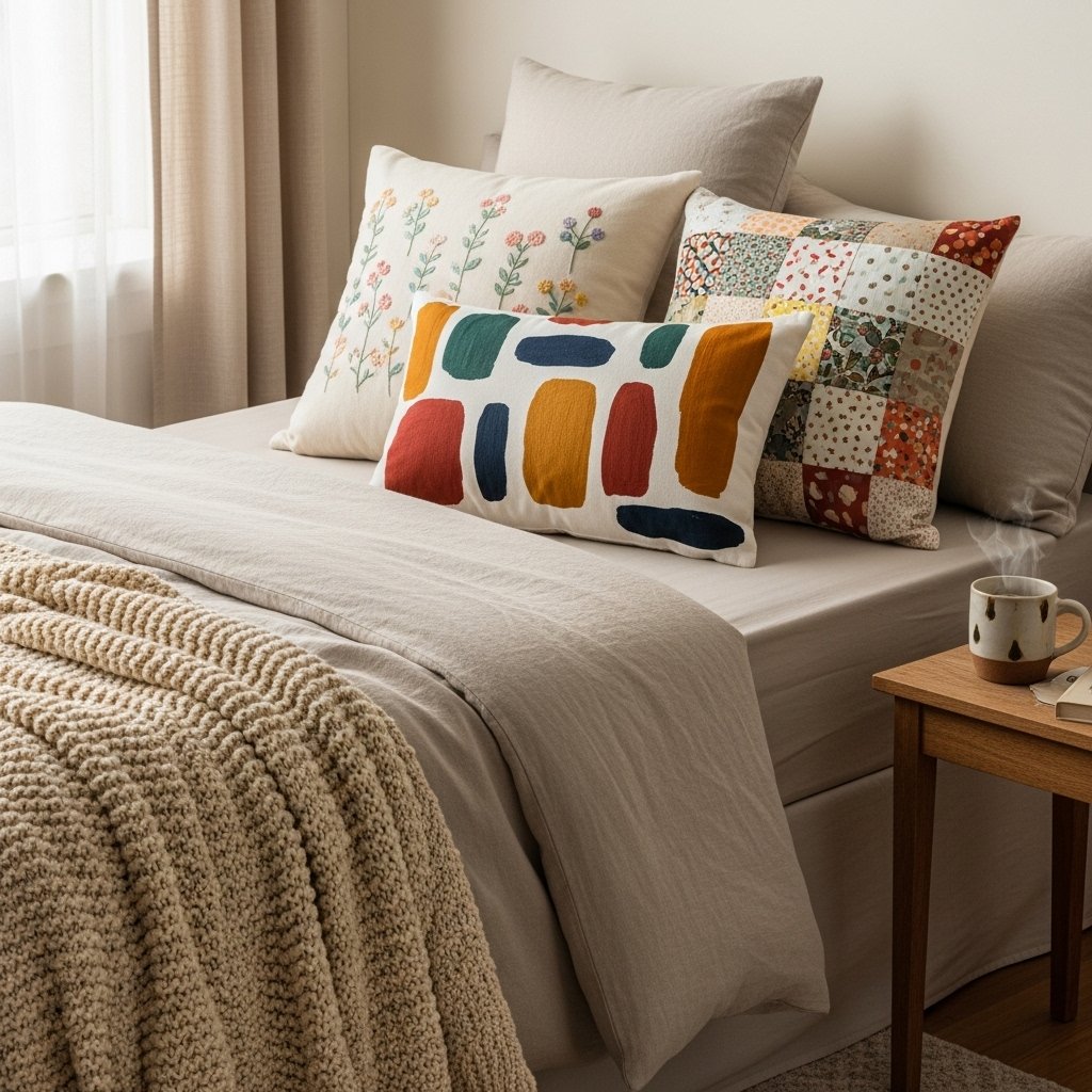 DIY pillow covers are a simple yet impactful bedroom décor project. You can sew or customize covers using fabric paint, embroidery, or patchwork designs. Handmade pillows allow you to change your room’s look seasonally or whenever inspiration strikes. Pairing them with a DIY throw blanket adds extra coziness. These soft accents make your bed feel inviting and creatively styled.