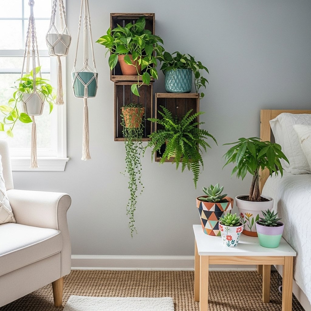 DIY plant displays bring life and freshness into your bedroom. You can create hanging planters, wall-mounted holders, or decorated pots using paint or fabric. Plants add a calming and natural element that improves the room’s atmosphere. Even artificial plants can work beautifully for low-maintenance décor. These green touches enhance creativity and balance in your bedroom design.