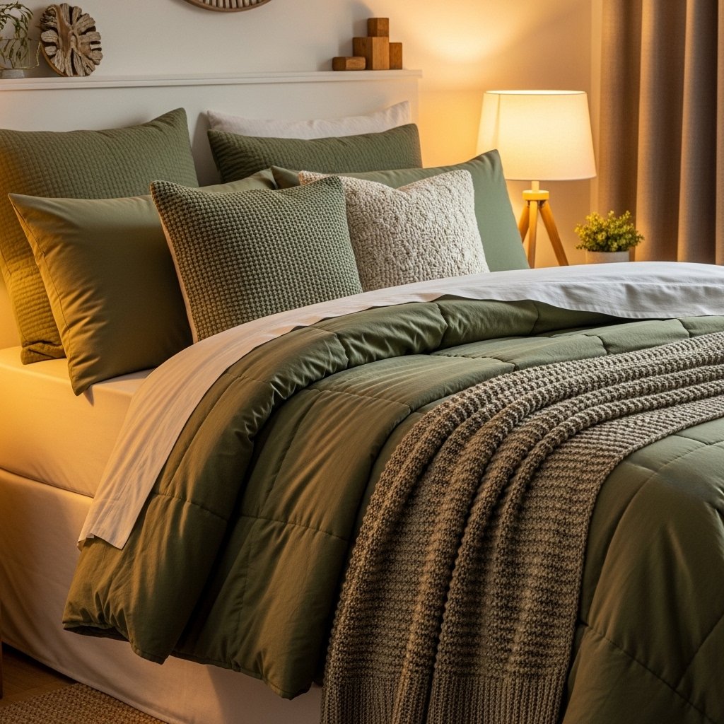 2. Green Bedding for Instant Cozy Vibes