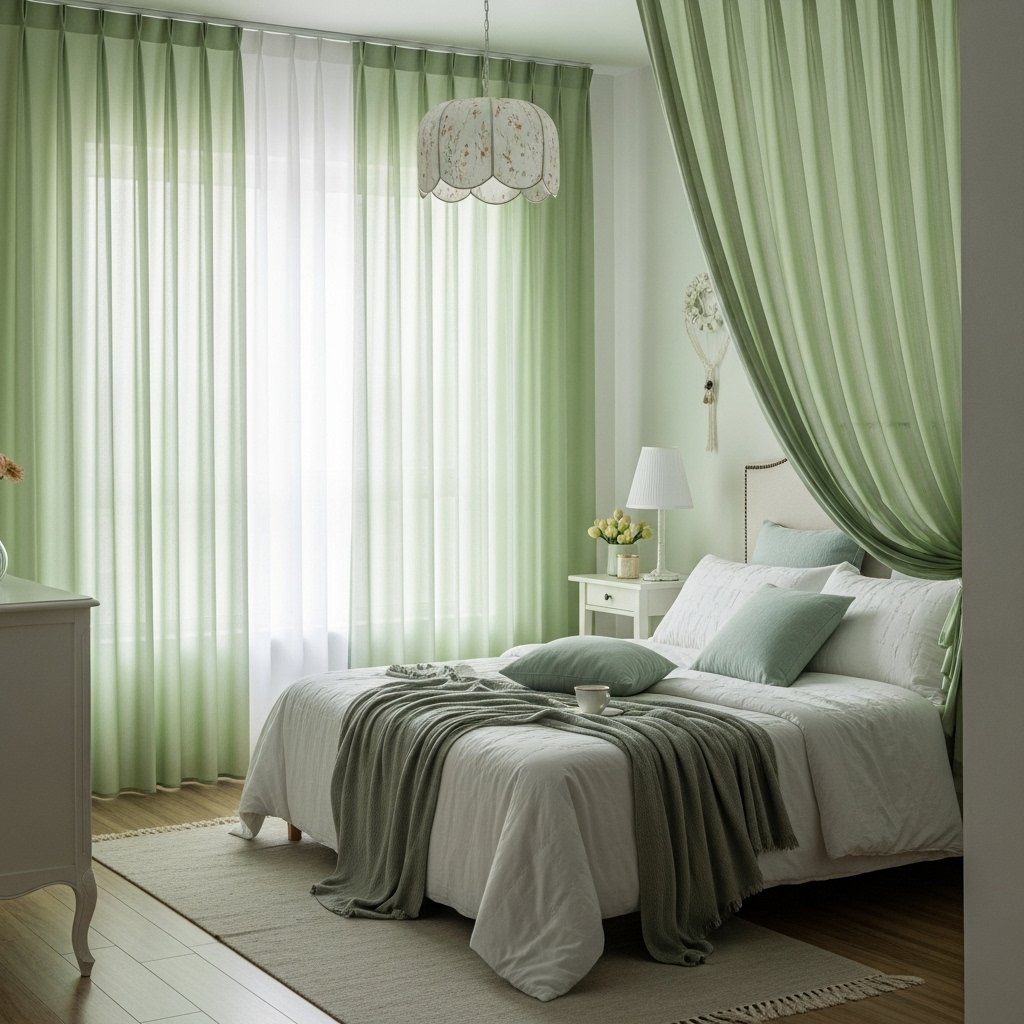7. Green Curtains for a Soft Touch