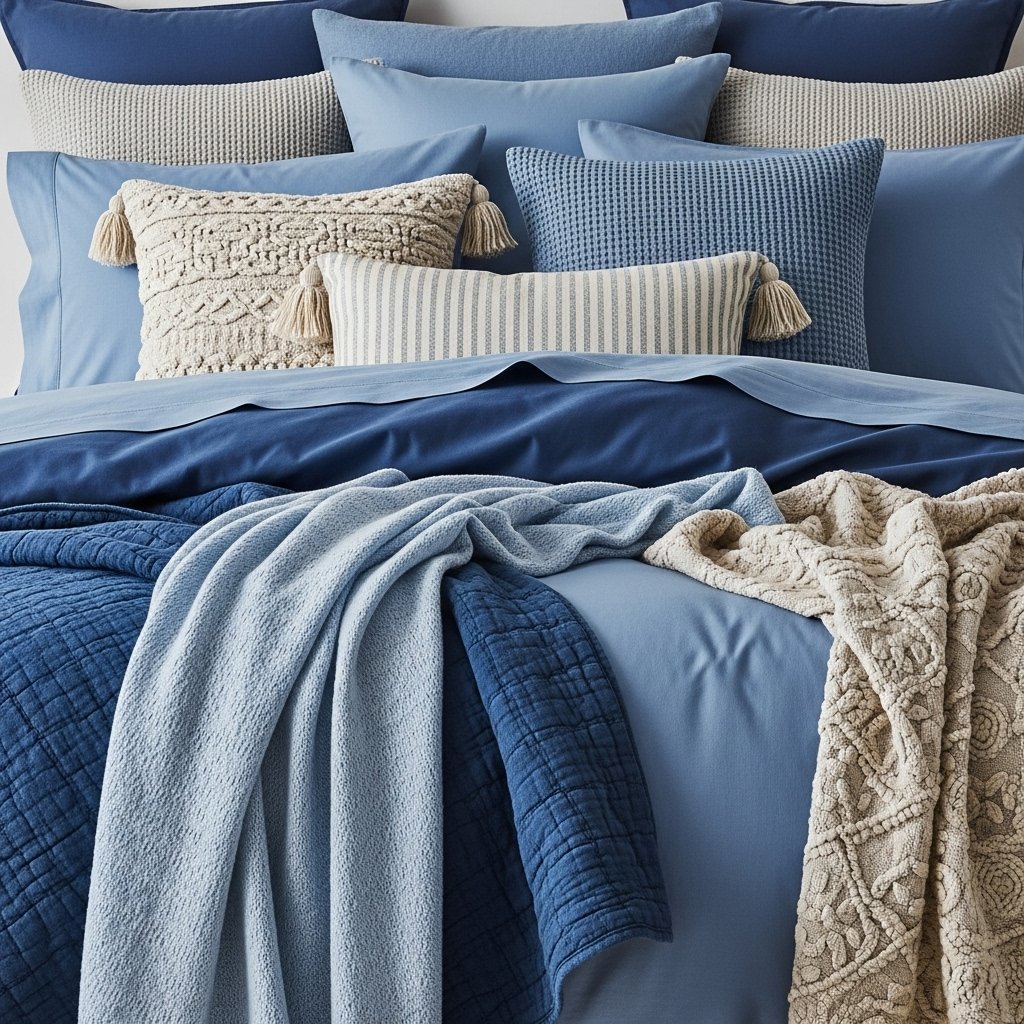 3. Layered Blue Bedding for Comfort