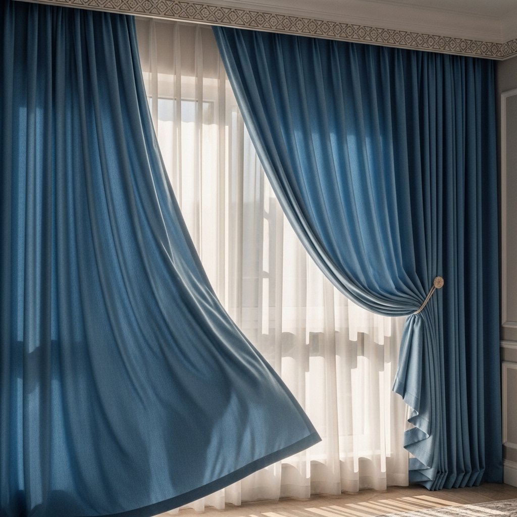 5. Blue Curtains for Softness and Privacy