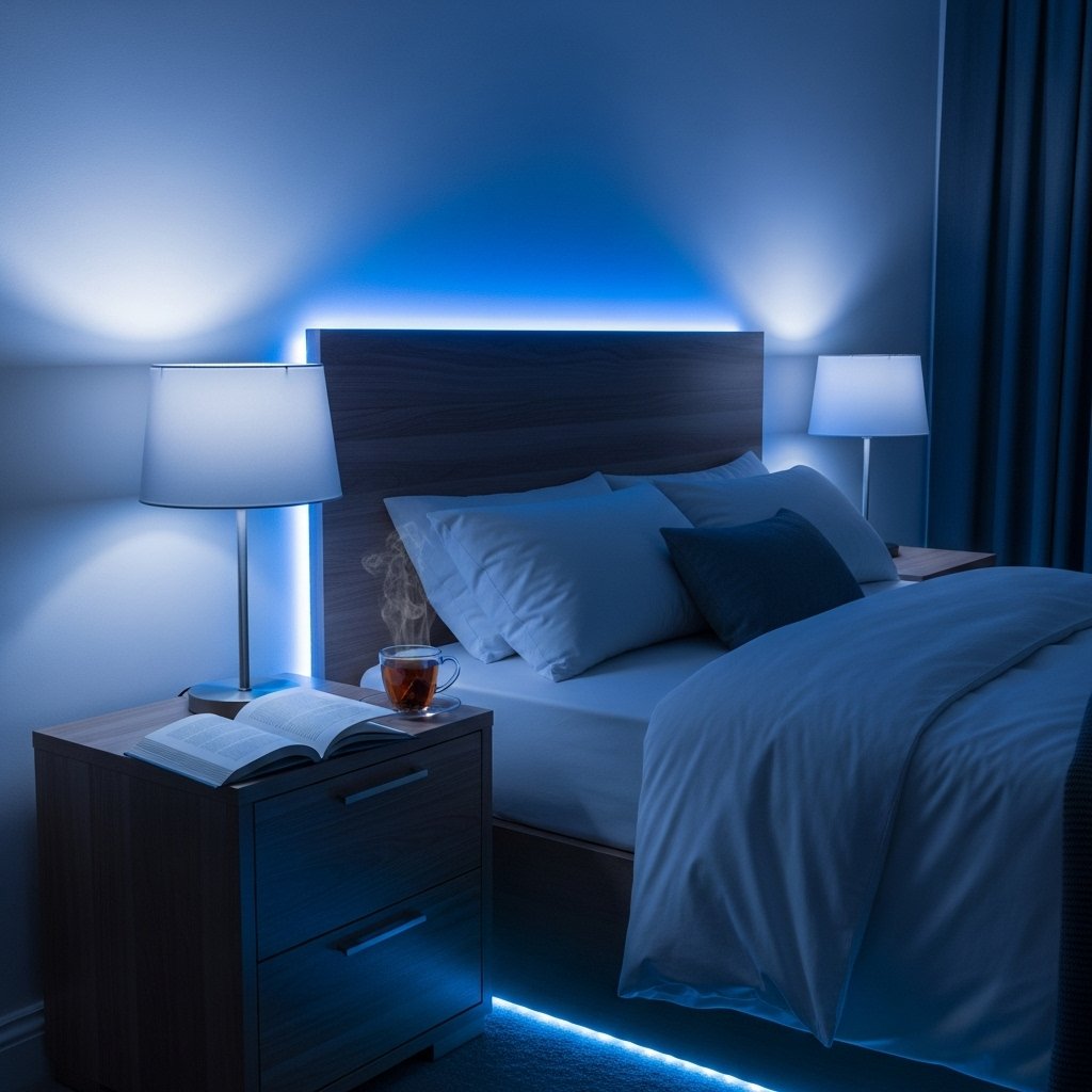 Lighting can enhance a cozy blue bedroom dramatically. Choose lamps with blue bases, lampshades, or LED lights with soft blue tones. Ambient lighting with dimmers can create a relaxing environment in the evening. Accent lighting highlights décor elements like art or shelving. Well-placed lights make the room feel warm, intimate, and visually appealing.