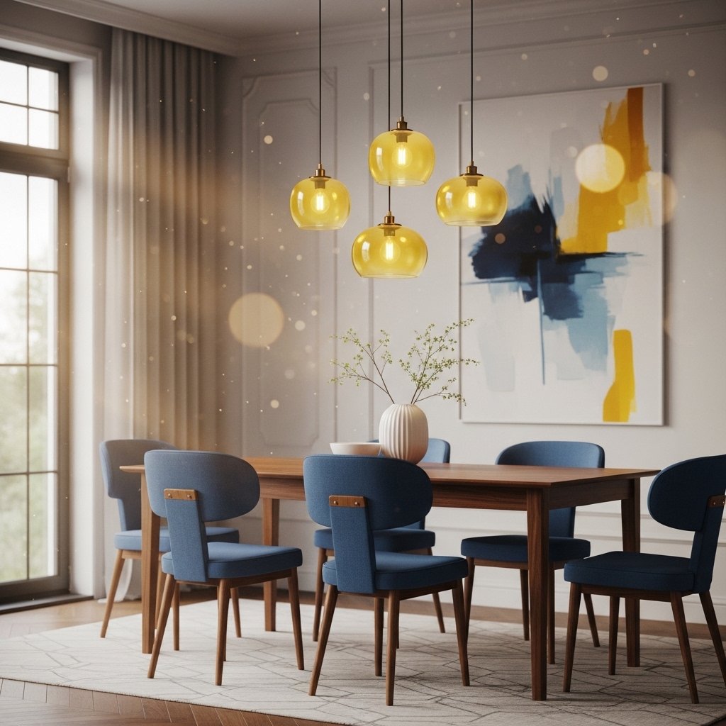In a dining area, a blue table or chairs combined with yellow lighting creates a warm and inviting space. This color combination encourages social interaction and appetite. You can also use patterned table runners that mix both colors. Wooden elements help soften the bold palette. This setup is perfect for family dinners and gatherings.