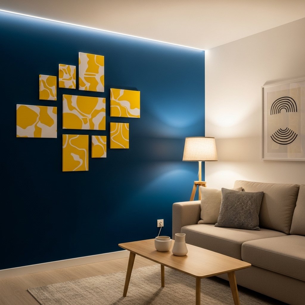 1. Blue and Yellow Living Room Accent Wall