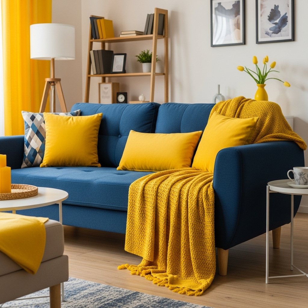 If you don’t want a full renovation, you can still achieve a blue yellow interior using accessories. Items like vases, rugs, curtains, and wall art can easily transform a space. Mixing patterns and textures adds depth without overpowering the room. This is the most budget-friendly way to update your home style. Small changes can make a big visual impact.