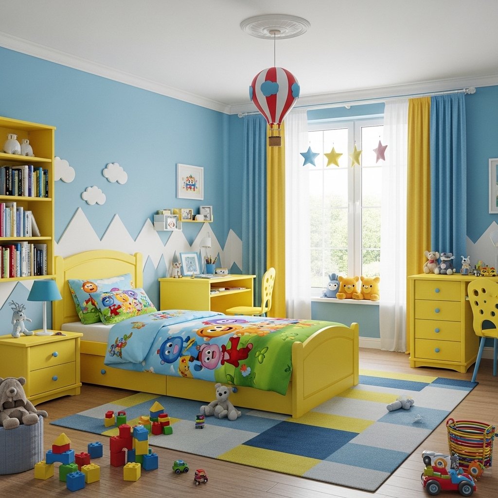 8. Blue Yellow Kids Room Design