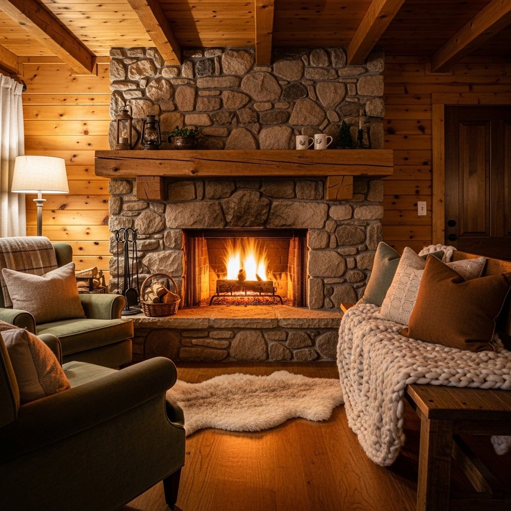 2. Cozy Stone Fireplace Centerpiece