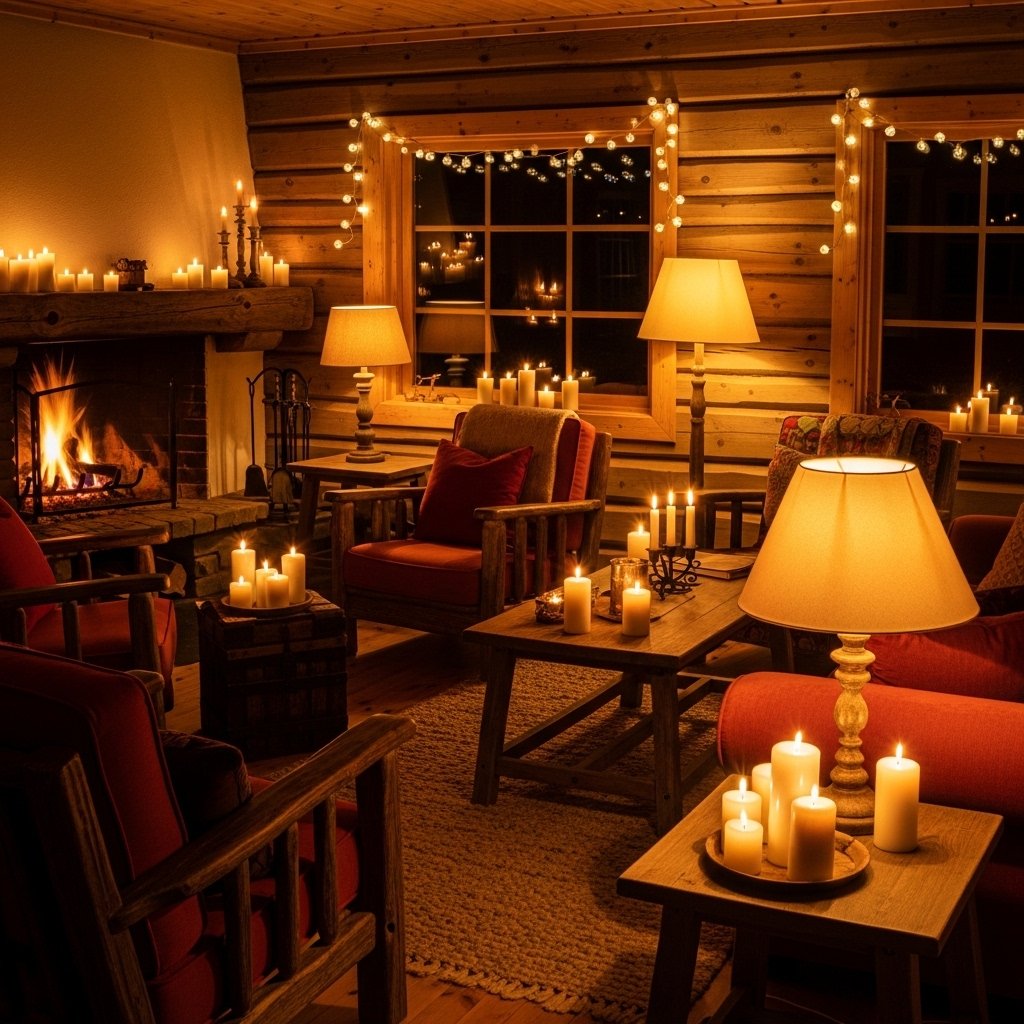 Lighting plays a crucial role in setting the mood of a cabin house interior. Warm-toned lights create a soft and inviting glow that enhances the cozy atmosphere. Table lamps, wall sconces, and pendant lights can be layered to add depth and dimension. Candles and lantern-style fixtures further complement the rustic theme. Proper lighting ensures that the space feels comfortable both during the day and at night.