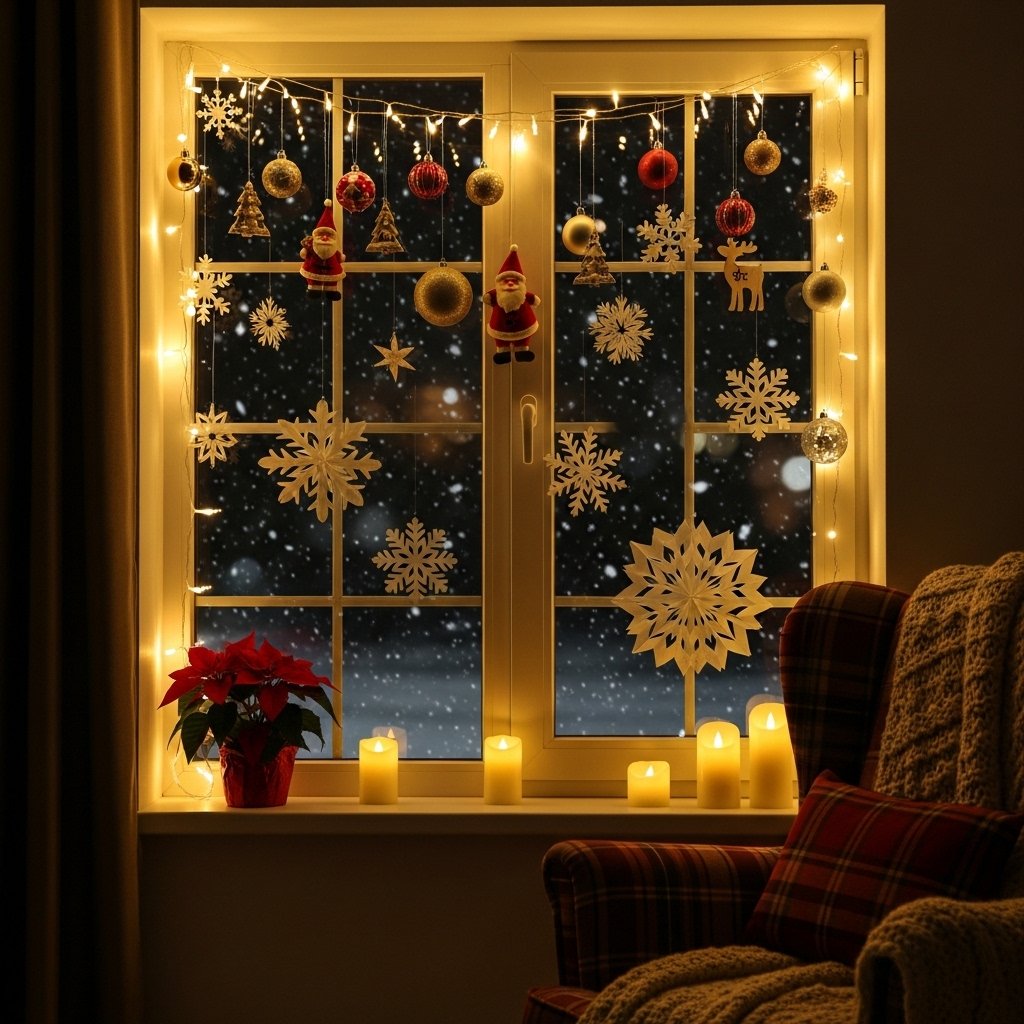 Decorating your bedroom windows is an easy way to spread Christmas cheer both inside and outside. Hang lightweight ornaments, snowflakes, or fairy lights along the window frame. You can also use sheer curtains layered with lights for a soft glowing effect. This setup looks especially beautiful at night when the lights reflect softly. It’s a simple yet elegant way to enhance your bedroom decor.