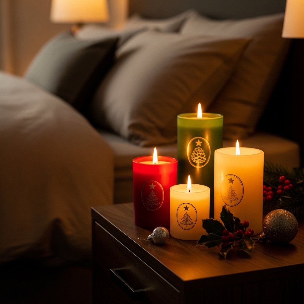 Scent plays a big role in creating a festive atmosphere in your bedroom. Christmas-scented candles like cinnamon, pine, vanilla, or peppermint instantly make the space feel cozy and seasonal. Place candles on nightstands, shelves, or dressers for a soft and calming glow. Always use them safely or opt for flameless candles for convenience. This simple addition enhances both the look and feel of your room.