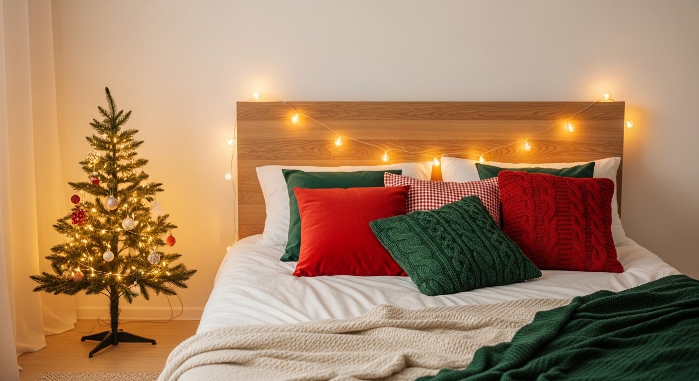 Throw pillows are one of the simplest ways to update your bedroom for Christmas. Swap your regular pillows with holiday-themed covers featuring patterns like snowflakes, Santa, or plaid designs. Mixing textures such as velvet, knit, or faux fur adds depth and coziness to your bed or seating area. These small accents make a big visual difference without requiring a full room makeover. Plus, they are easy to store and reuse every year.