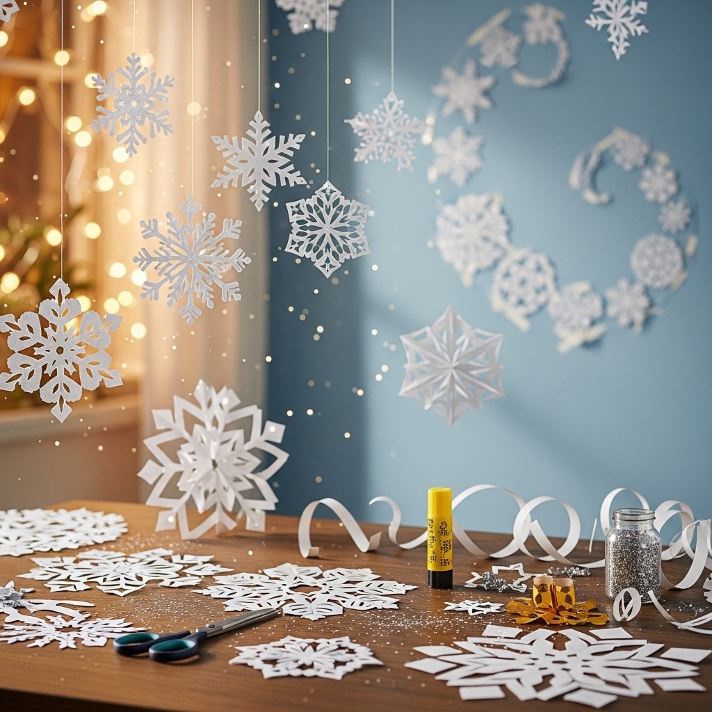 Paper snowflakes are classic, easy, and look incredibly pretty when hung around the room. Simply fold paper and cut small shapes to create unique snowflake patterns. You can hang them from the ceiling using thread or tape them on the wall to create a snowy effect. Add a few glitter touches for a sparkling winter feel. This DIY project is perfect for kids and adults alike.