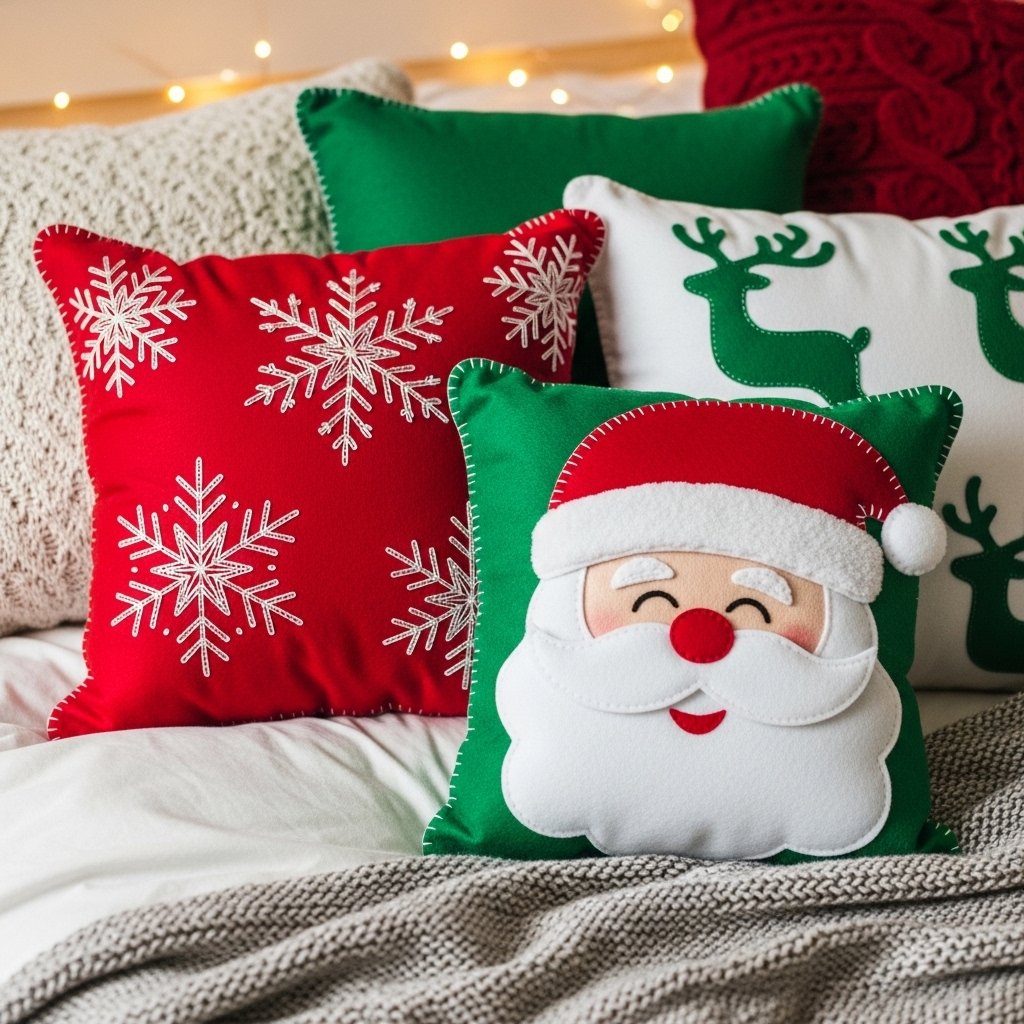 Christmas pillow covers instantly change the look of your room and make it feel festive. You can use red, green, or white fabric to create simple covers with Christmas patterns. Add DIY designs like snowflakes, Santa hats, or reindeer using fabric paint or felt. These covers are easy to make and can be reused every year. They also make your room look cozy and welcoming.