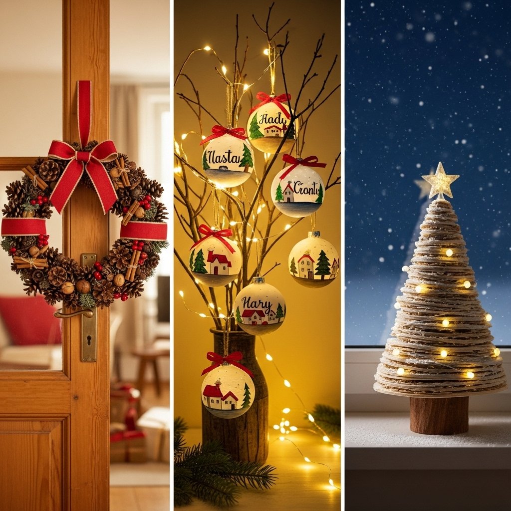 Simple DIY Christmas decor ideas include paper snowflakes, handmade wreaths, fairy light arrangements, and small Christmas-themed wall hangings. These decorations are easy to make at home and do not require advanced crafting skills. They help transform a plain room into a cheerful Christmas space.