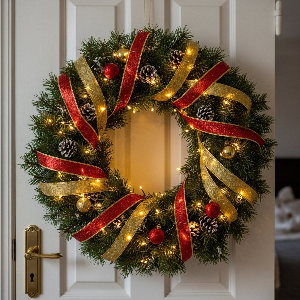 A Christmas wreath on the bedroom door instantly creates a festive look. Use a foam wreath base and decorate it with pine branches, ribbons, and ornaments. You can also add LED lights to make the wreath shine at night. This DIY project is easy and can be customized with different colors and themes. A wreath is a timeless decoration that brings Christmas spirit to the entire room.