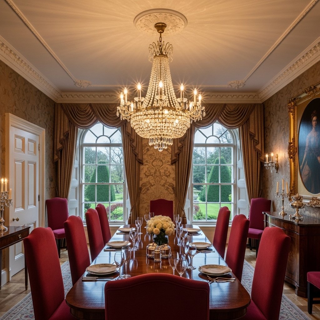 Lighting plays a key role in defining a classic house interior, and chandeliers are a signature element. Crystal or antique-style chandeliers serve as focal points in living rooms and dining areas. They not only provide illumination but also add a layer of grandeur and sophistication. Choosing warm lighting enhances the cozy yet luxurious feel. A well-placed chandelier can instantly transform the atmosphere of a space.
