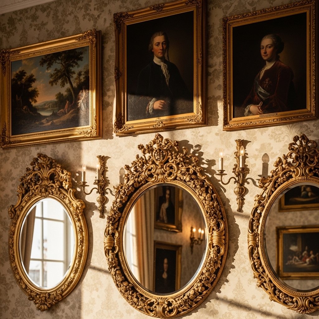 Walls in classic interiors are rarely left plain, often adorned with art and mirrors. Framed paintings, portraits, and landscape artwork enhance the visual appeal. Large mirrors with ornate frames help reflect light and create a sense of space. These decorative elements add personality while maintaining elegance. Proper placement ensures a balanced and cohesive look.