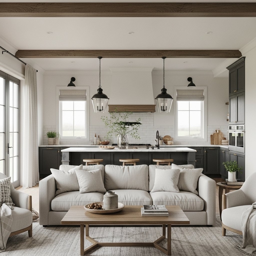 Thank you for reading this post, don't forget to subscribe!Contemporary farmhouse interior design blends the charm of traditional farmhouse aesthetics with the clean lines of modern style. This popular design trend focuses on creating a cozy, inviting space while maintaining a fresh and updated look. It combines natural materials, neutral color palettes, and functional layouts to achieve a perfect balance between comfort and sophistication. Homeowners love this style because it feels both timeless and practical for everyday living. In this guide, you’ll explore 12 fully optimized contemporary farmhouse interior ideas to transform your home into a warm and modern retreat.