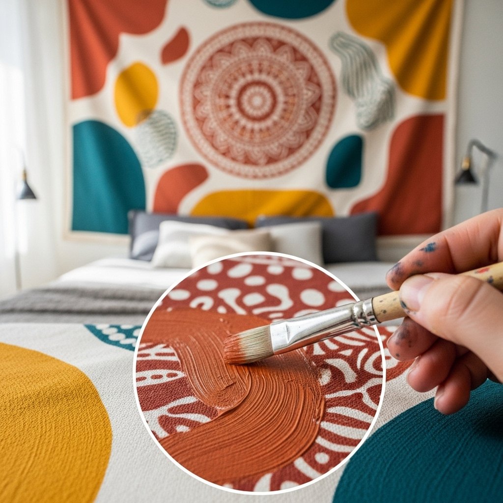 A wall tapestry is a great way to add color and style to your bedroom wall. You can use a plain fabric and paint your favorite design using fabric paint. Choose patterns like abstract shapes, boho vibes, or even floral prints to match your room theme. Hanging it above your bed makes a stunning focal point and adds texture to the room. This DIY project is easy, affordable, and gives your room a custom look.