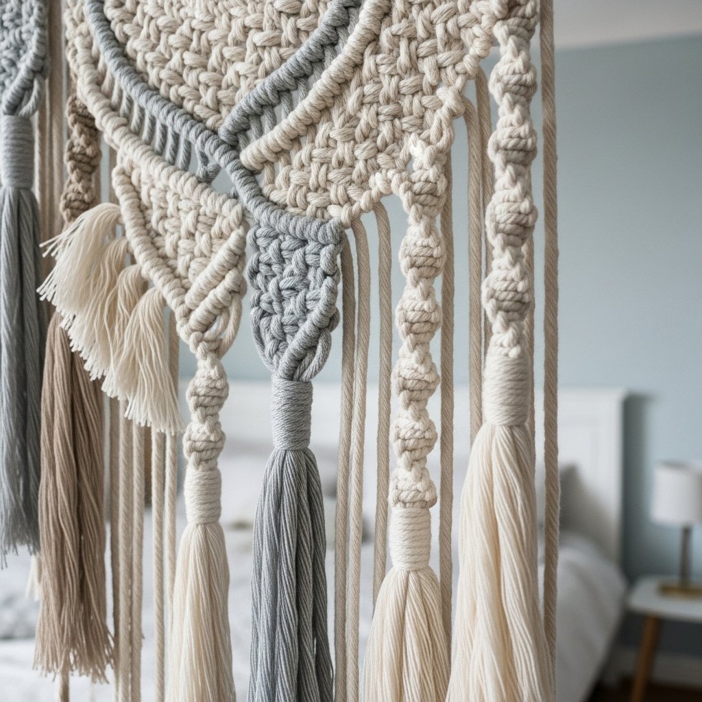 Macrame wall hanging is one of the coolest room decor ideas for a boho bedroom. You only need rope or yarn and basic knotting skills to create a beautiful design. You can keep it simple or make a large statement piece depending on your preference. Macrame adds a soft, handmade touch to your room and looks great with neutral colors. This project is perfect for beginners and adds a trendy vibe instantly.