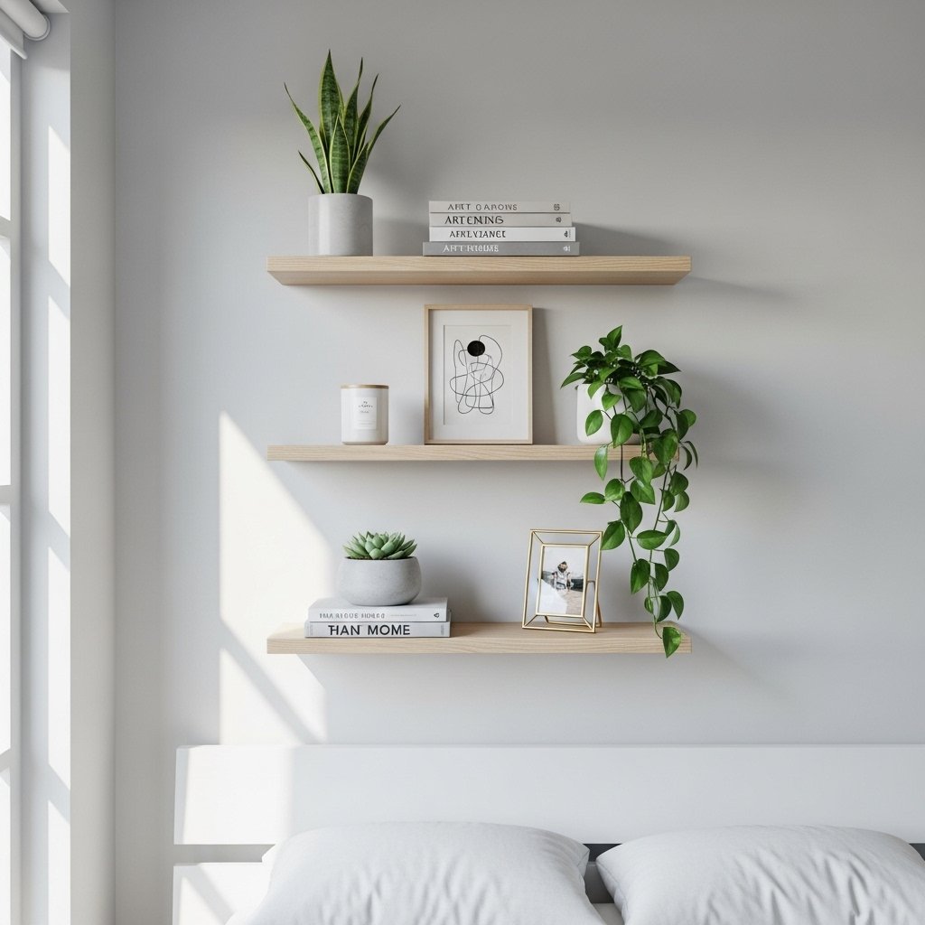 Floating shelves are not only stylish but also very functional for bedroom decor. You can make simple shelves using wooden boards and wall brackets. Decorate them with plants, books, candles, and small accessories to create a cool look. Floating shelves help you organize your room while adding a modern touch. This DIY project is perfect for anyone who wants to keep their room neat and trendy.