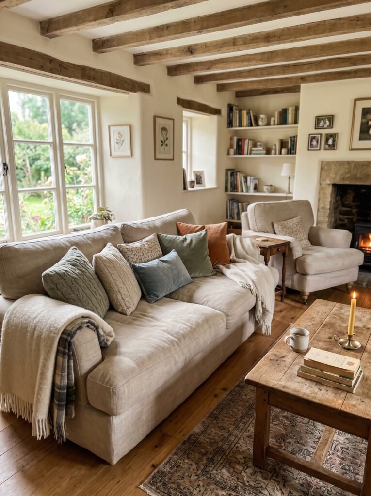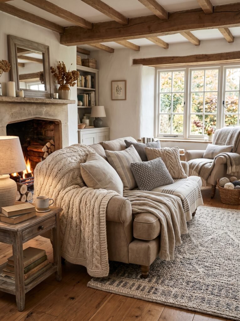 Layering textiles is essential for achieving a warm cottage feel. Combine soft blankets, knitted throws, and linen cushions to create depth and comfort. Natural fabrics like cotton, wool, and linen are commonly used in this style. These materials not only look beautiful but also feel cozy and inviting. Layering helps make the space feel lived-in and relaxed.