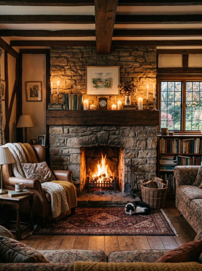 A fireplace is often considered the heart of a cottage-style home. Whether it is a real wood-burning fireplace or an electric version, it instantly adds warmth and comfort. Surrounding the fireplace with rustic stone or wooden mantels enhances the aesthetic. Decorating it with candles, books, or seasonal decor makes it even more inviting. It becomes a natural gathering place for family and friends.