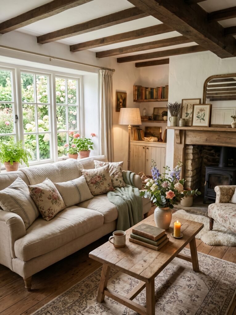 The cottage aesthetic interior is all about creating a home that feels warm, peaceful, and deeply personal. It focuses on natural materials, soft colors, and cozy textures that promote relaxation and comfort. By combining rustic furniture, vintage decor, and natural elements, you can easily transform any space into a charming cottage-inspired retreat. This style is not about perfection but about creating a lived-in, welcoming atmosphere. With these 12 ideas, you can design a home that reflects timeless beauty and everyday comfort.