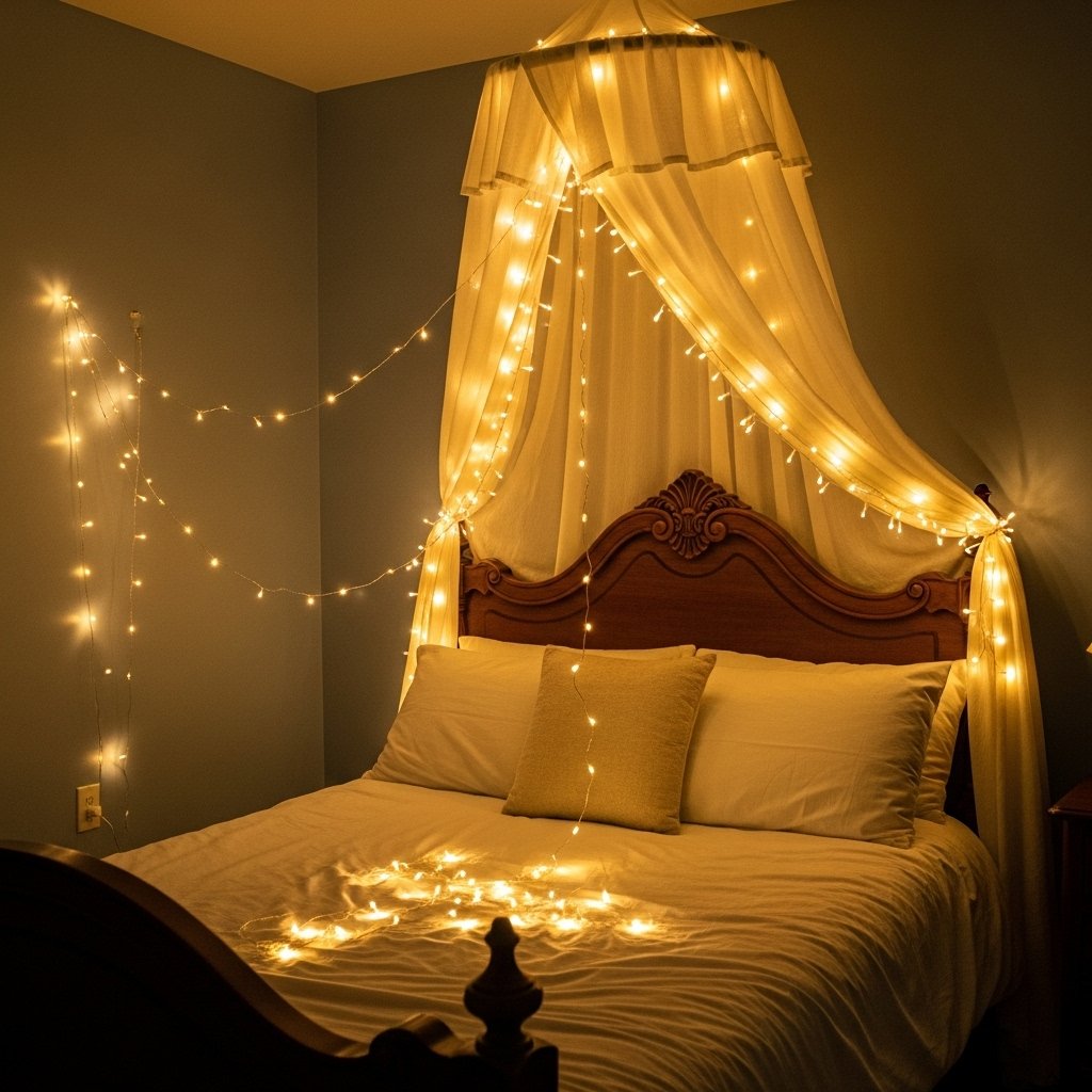 1. String Fairy Lights Around the Bed