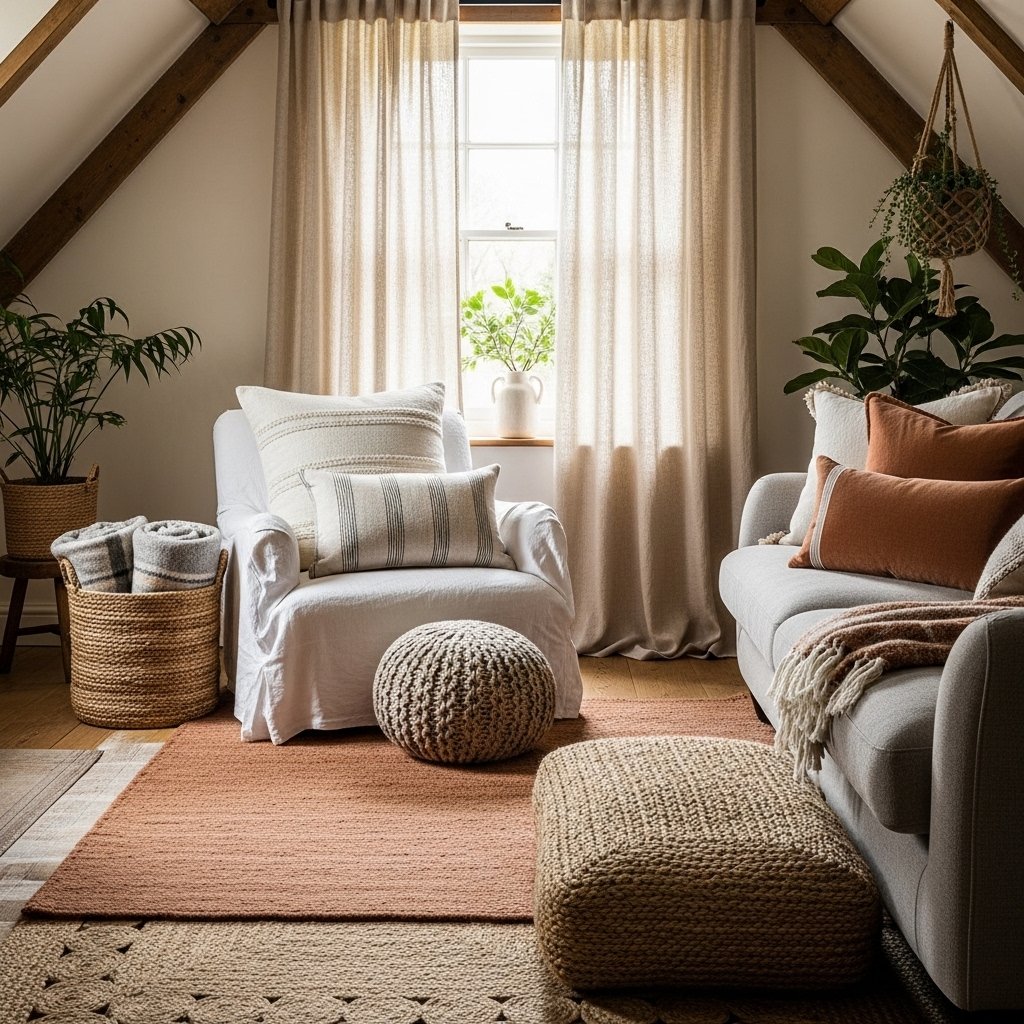 Natural textures are essential in cottage style homes interior design. Linen, cotton, wool, and jute materials are commonly used for curtains, rugs, and cushions. These fabrics add depth while maintaining a soft and organic feel. Mixing textures helps create a layered and cozy atmosphere. The overall effect is warm, inviting, and naturally beautiful.