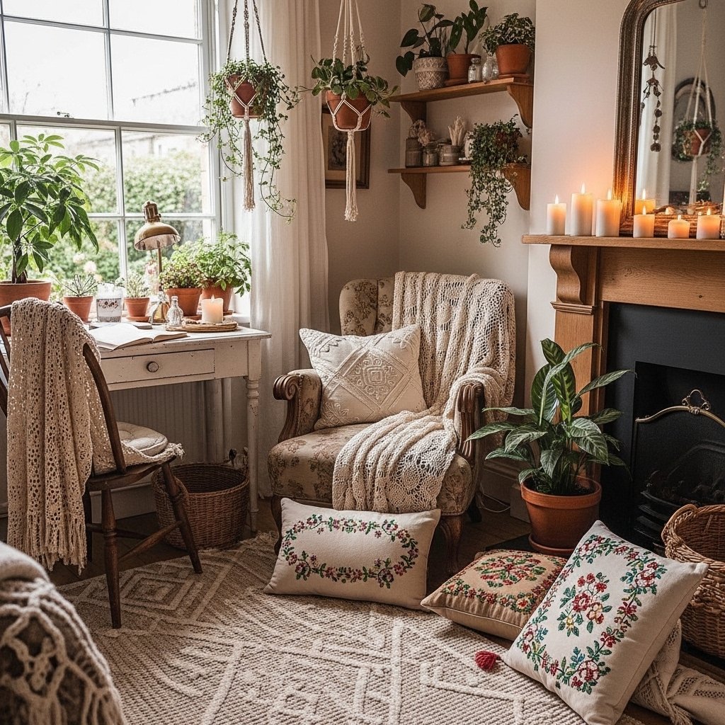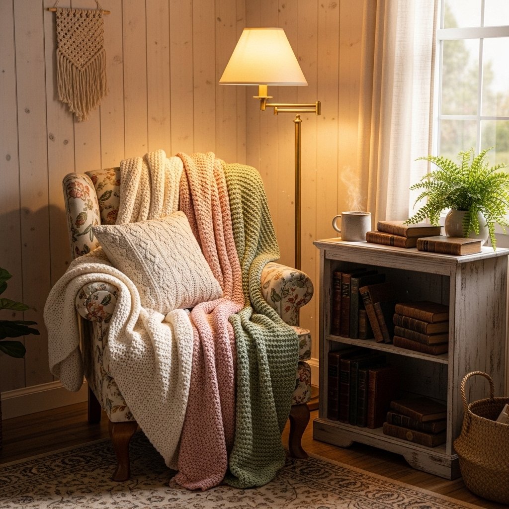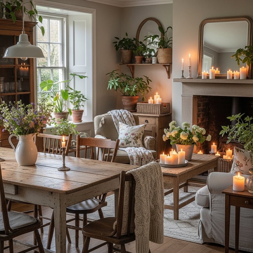 Layering textiles is key to achieving a warm and inviting cottagecore look. Use soft blankets, knitted throws, and plush cushions in different textures. Combining linen, cotton, and wool materials adds depth and comfort to your space. This layered approach makes your home feel relaxed and welcoming. It’s perfect for creating cozy corners where you can unwind.