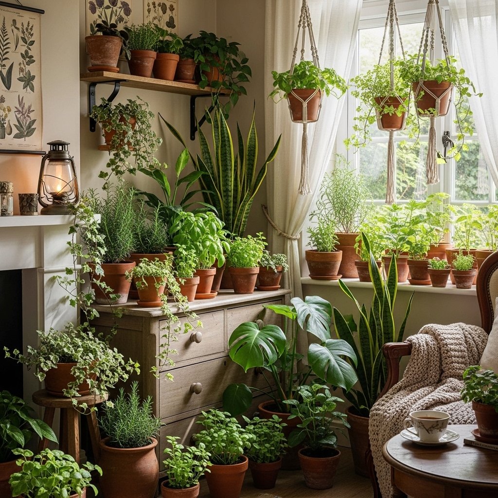 Bringing nature indoors is essential for a cottagecore aesthetic house interior. Add potted plants, herbs, or small indoor trees to your living spaces. Greenery adds freshness and a calming effect to the environment. Choose simple clay or ceramic pots to maintain a natural look. This idea strengthens the connection between your home and the outdoors.