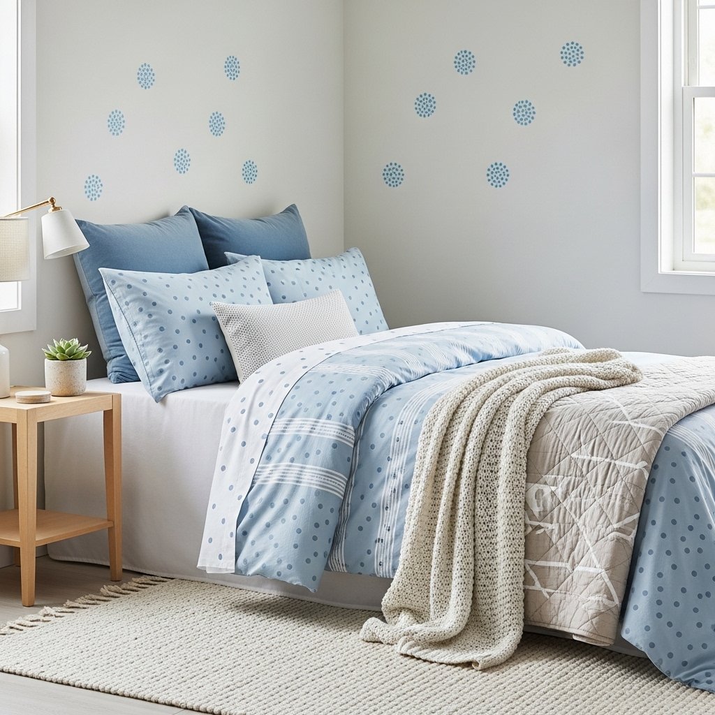 Incorporating subtle patterns and textures in baby blue keeps a small bedroom visually engaging. Consider polka dots, stripes, or chevron patterns on cushions, bedding, or wall decals. Textured fabrics, such as knit throws or velvet pillows, enhance coziness without crowding the space. Patterns help balance plain walls and surfaces while maintaining the calming vibe. This approach adds personality and warmth to the bedroom while keeping it small-space friendly.