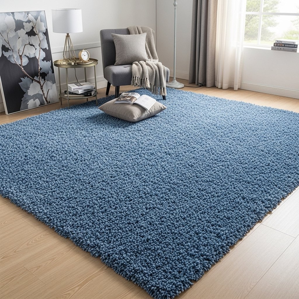 A blue rug can anchor the room while adding softness underfoot, perfect for small bedrooms. Opt for plush or shaggy rugs to increase comfort and warmth. Light or medium blue shades complement walls and furniture, while darker blue rugs can create contrast and define zones in compact spaces. Rugs also help reduce noise, making the bedroom feel more peaceful and inviting. This simple addition is both functional and aesthetically pleasing.