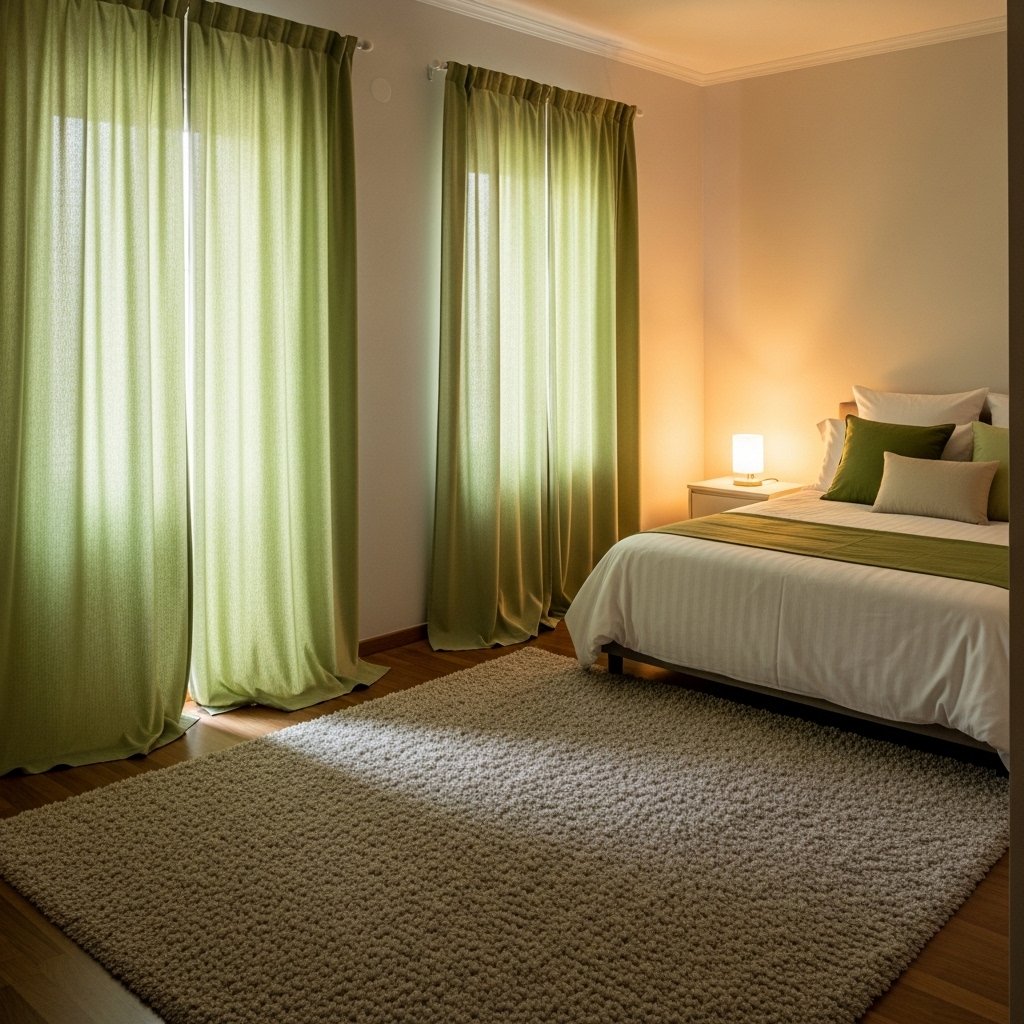 Curtains and rugs are often overlooked but play a big role in tying the room together. Choose light green or neutral curtains to keep the room bright and airy. A soft rug in complementary tones adds comfort and warmth underfoot. Patterns and textures can enhance the overall design without overpowering the space. These finishing touches complete the cozy bedroom look.