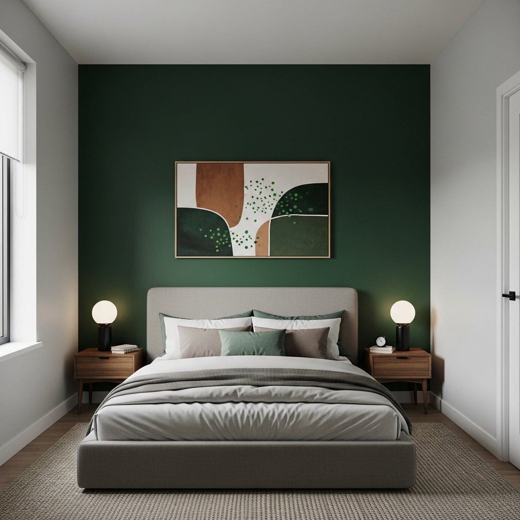 A green feature wall can add depth and character to a small bedroom without overwhelming the space. Choose one wall to paint in a darker shade like forest green or emerald for a bold effect. This creates a focal point while keeping the rest of the room light and airy. Adding wall decals or simple artwork enhances the design further. A feature wall is a great way to make the room visually interesting and stylish.