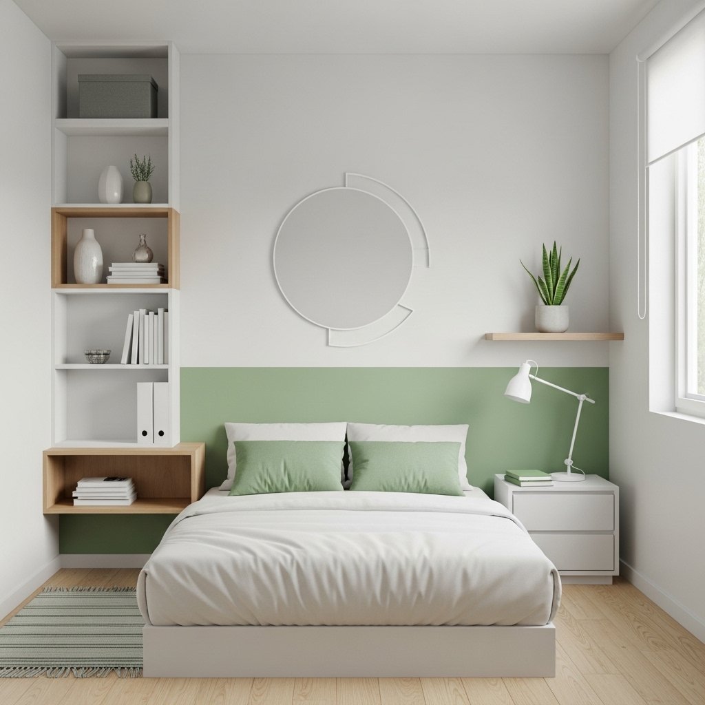 Starting with a soft green color palette is essential for creating a cozy atmosphere in a small bedroom. Shades like sage green, mint, or olive help make the room feel fresh without overwhelming the space. Light green walls can reflect natural light, making the room appear larger and brighter. Pairing green with white or beige tones keeps the design balanced and clean. This simple color strategy sets the foundation for a calming and stylish bedroom.