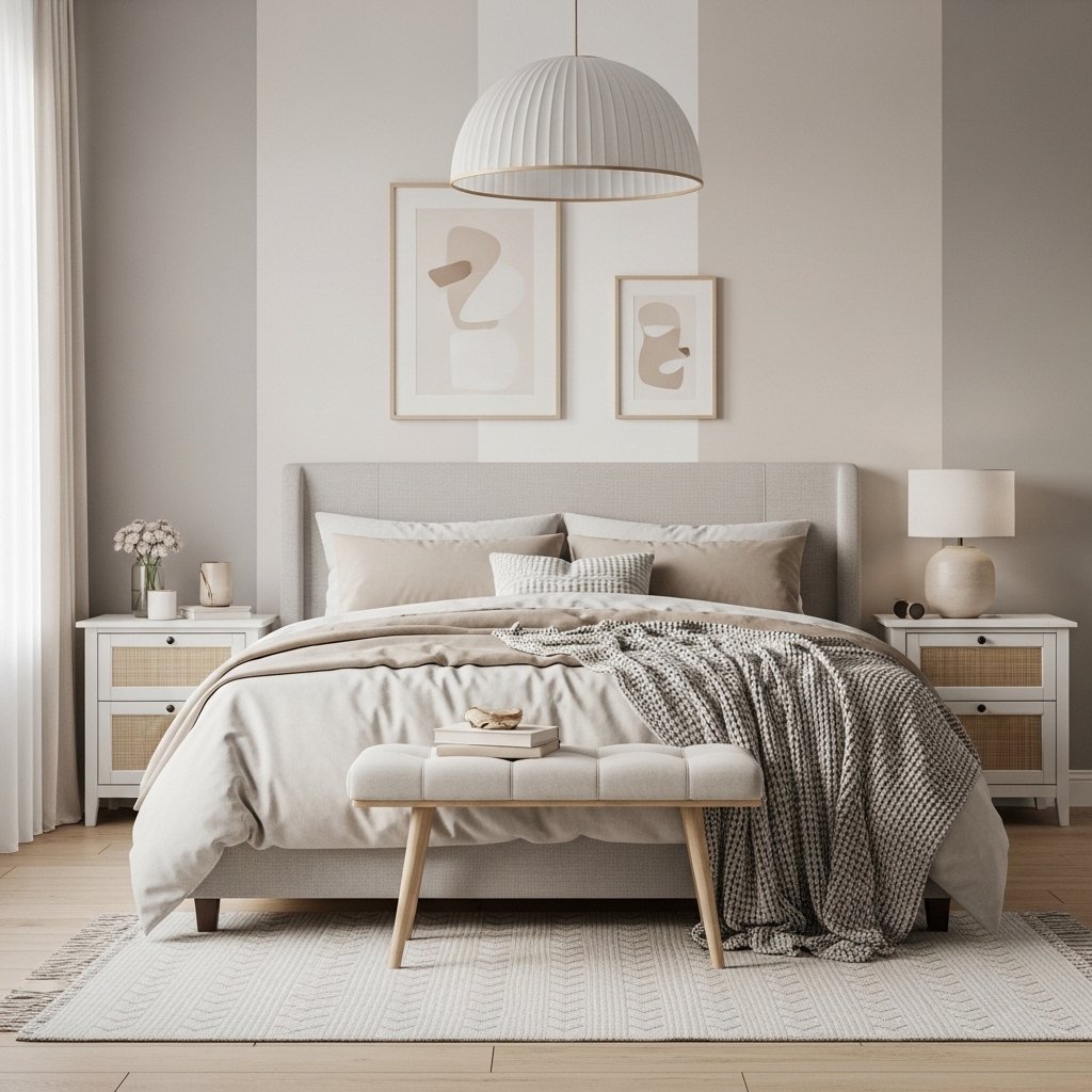 Soft and warm colors like beige, cream, light brown, pastel shades, and warm grey are best for a cozy bedroom. These colors create a calm and relaxing environment. Avoid very bright or harsh colors, as they can make the room feel less comfortable.
