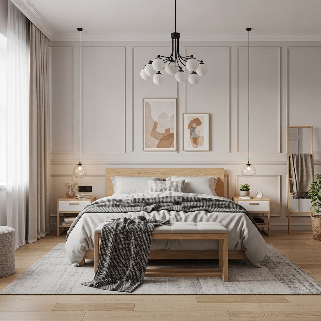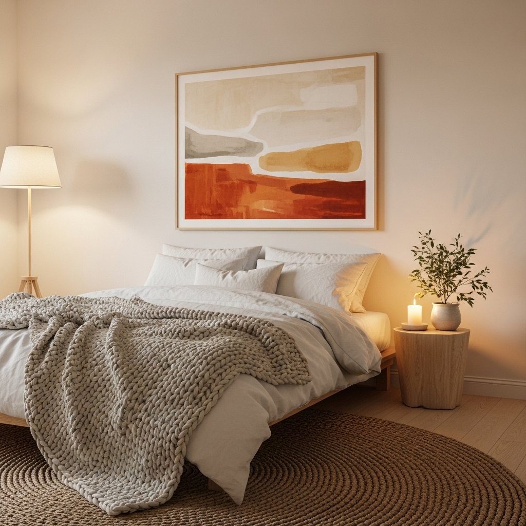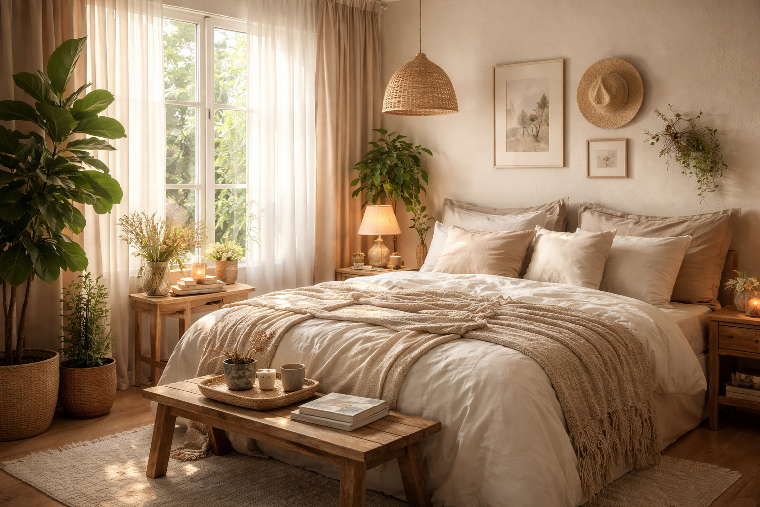 A cozy bedroom feels warm, comfortable, and relaxing. Soft textures like blankets, cushions, and rugs help create a calm atmosphere. Warm lighting, neutral or soft colors, and simple decor also make the space feel more inviting and peaceful, perfect for rest and comfort.