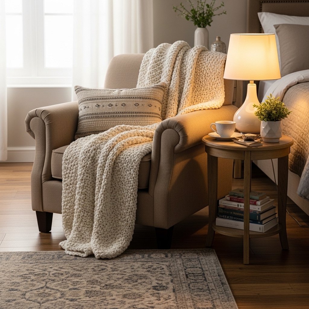 If space allows, include a small seating area in your bedroom. A cozy armchair or bench creates a perfect spot for reading or relaxing. Add a throw blanket and cushion to enhance comfort. This setup adds functionality while maintaining a warm aesthetic. It also makes your bedroom feel more complete and inviting.