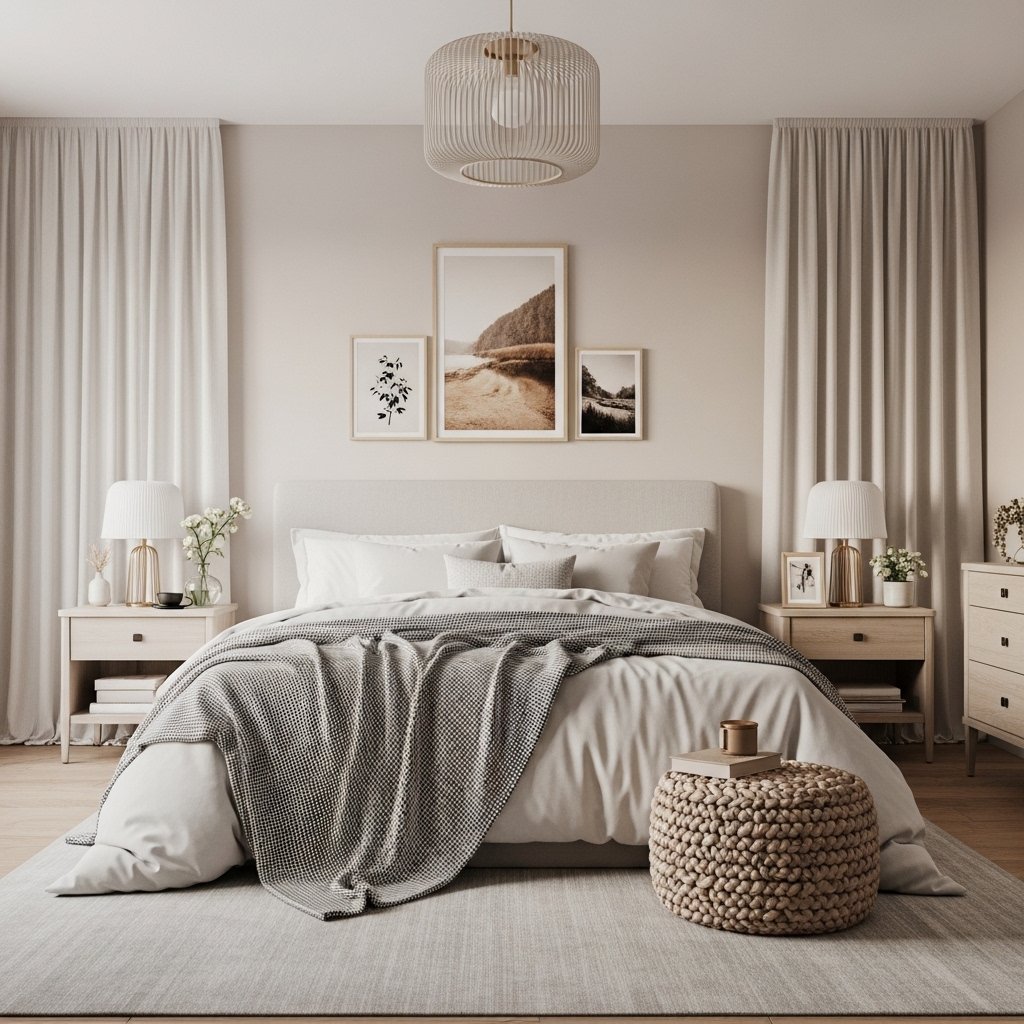 A soft neutral color palette is the foundation of any cozy bedroom interior. Shades like beige, cream, warm gray, and off-white create a calming and inviting environment. These tones reflect light gently, making the room feel airy yet warm. You can layer different neutral shades to add depth without overwhelming the space. This approach ensures your bedroom feels timeless and relaxing.