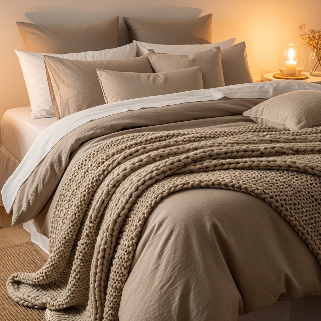 1. Layered Beige Bedding for Instant Warmth