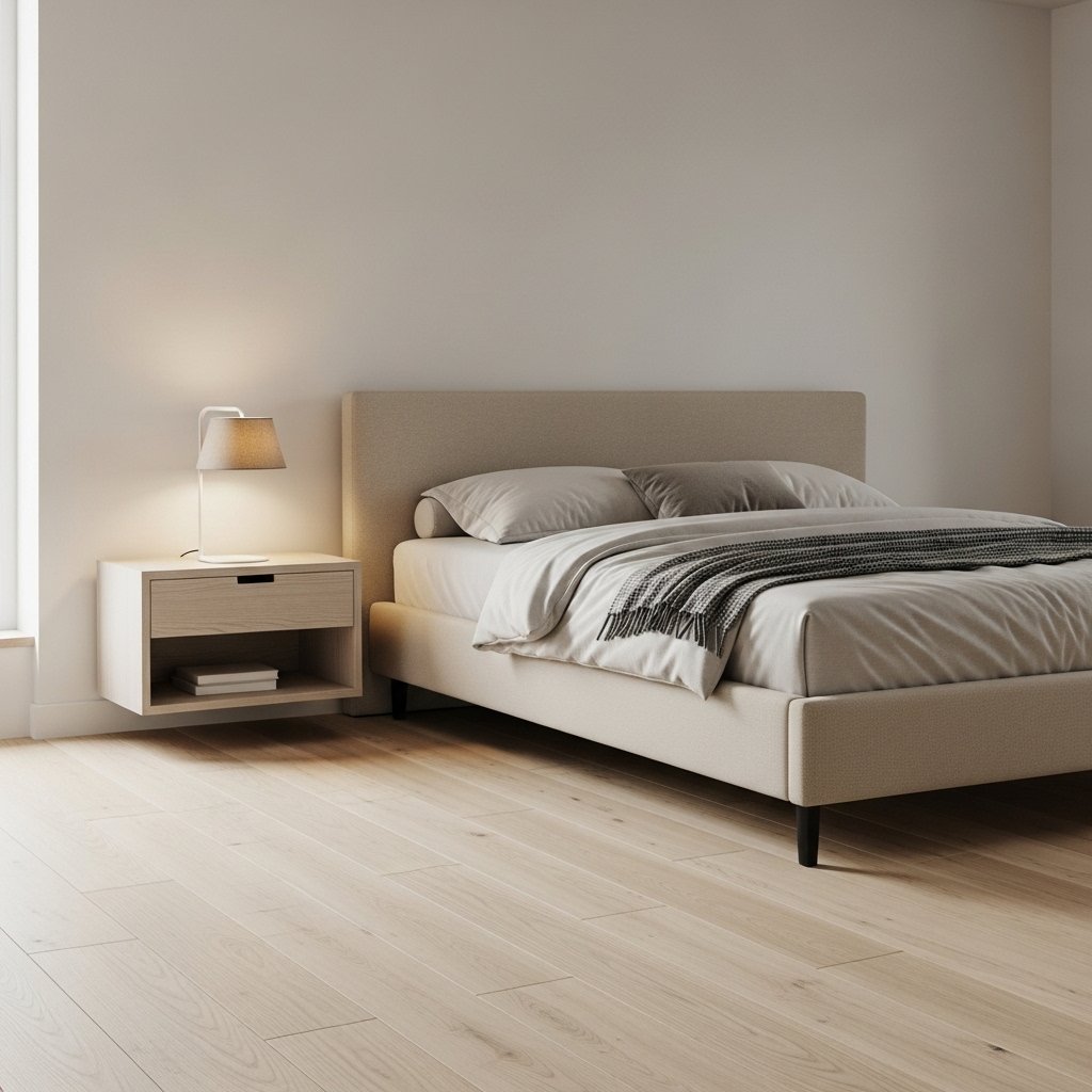 Minimal furniture works best in small bedrooms, especially in neutral tones. A simple beige upholstered bed frame paired with a slim nightstand keeps the layout open and uncluttered. Avoid bulky pieces and instead choose furniture with clean lines and soft edges. This style creates visual breathing room while maintaining elegance. The room instantly feels organized and peaceful.