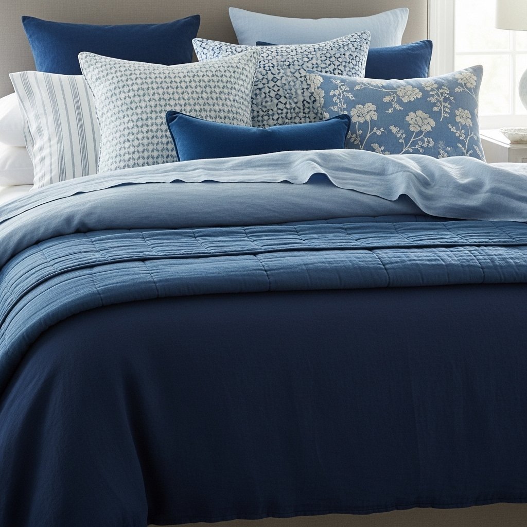 3. Layered Blue Bedding