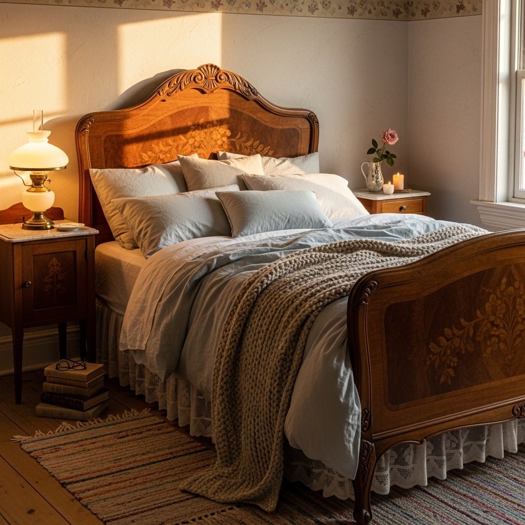 Decorate with items that look collected over time rather than newly purchased. Vintage clocks, framed sketches, and brass objects create authenticity in the space. Couples often enjoy decorating together by choosing meaningful pieces. Small details add storytelling and personality to the bedroom. These accents bring character without cluttering the room.