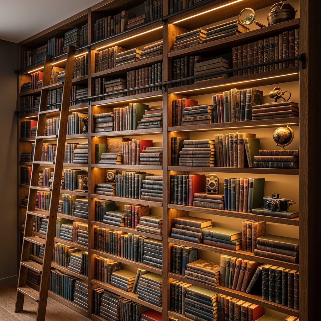 Books are essential to the dark academia atmosphere and also symbolize shared interests. A wall filled with classic novels, poetry collections, or vintage books creates visual texture. Couples can display books they both love, making the room feel personal. Mixing horizontal and vertical stacking keeps the shelves aesthetically balanced. This feature acts as both décor and personality.