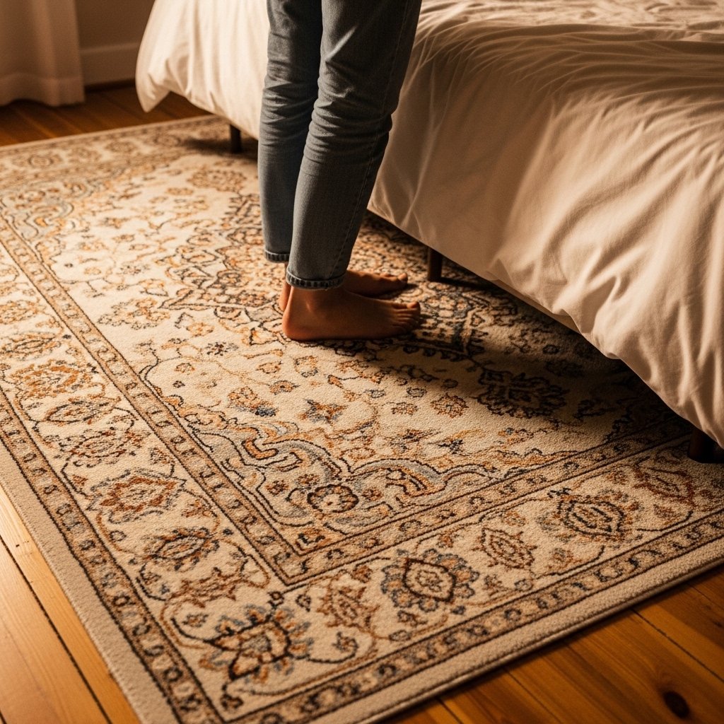 A textured rug grounds the room and adds comfort underfoot. Persian-style or vintage-inspired rugs work best for this aesthetic. Couples benefit from rugs because they make the bedroom feel warmer and quieter. The patterns introduce subtle visual interest without overpowering the décor. This detail ties all furniture together cohesively.