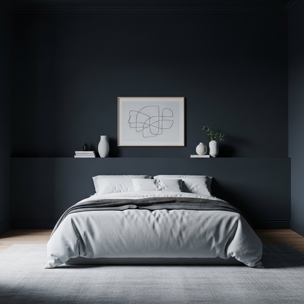 Using deep, matte wall colors like navy, charcoal, or forest green instantly adds warmth and intimacy to a small bedroom. Pairing dark walls with minimal décor prevents the space from feeling cluttered or overwhelming. Add a single statement piece like framed artwork or a cozy wall shelf to maintain balance. Light-colored bedding or rugs can provide contrast and prevent the room from feeling too heavy. This approach is perfect for small bedrooms that need sophistication with simplicity.